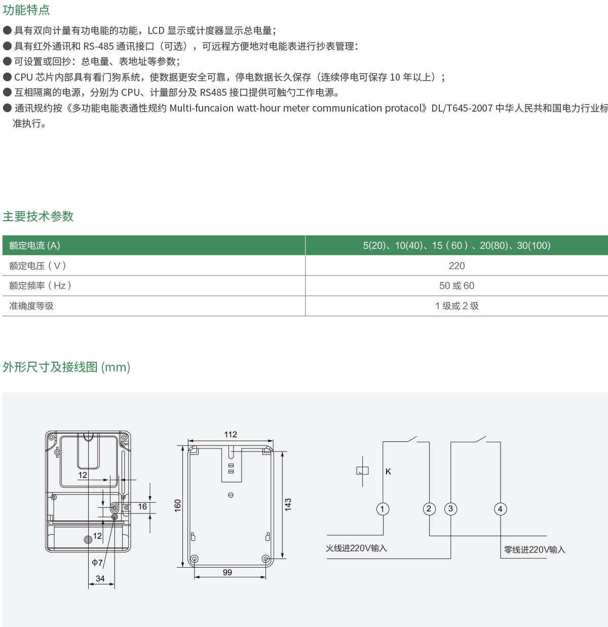DDS1902单相电子式电能表采用美国ADI公司的单相电能计量芯片AD E77 55和SMT及波峰焊接工艺,根据用户实际用电状况所设计、制造的新型仪表。本仪表全部技术指标符合GB/T17215.321—2008级静止式交流有功电度表》及IEC62053-21标准的要求。