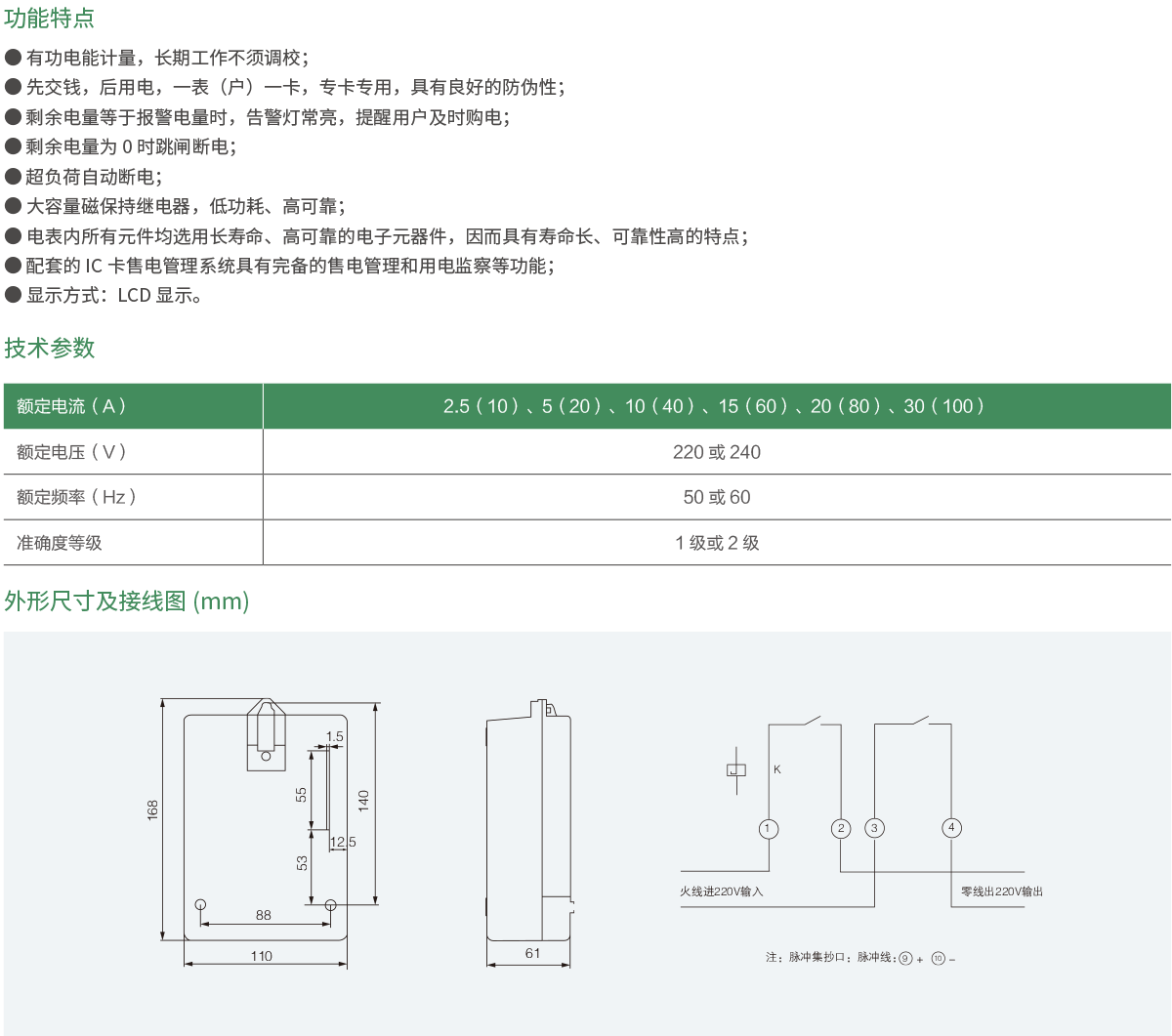 DDSY1902型插卡预付费单相电表是我公司在性能优良的电子式单相电能表的基础上研制开发的具有电能计量、负荷控制和用户信息管理等多种功能的新型IC卡式预付费电能表,该表是当前改革用电体制、实现电能商品化、解决收费难及调节电网负荷状态的理想产品。该产品的各项性能指标符合GB/T17215.321-2008《1级和2级静止式交流有功电度表》和GB/T18460.3-2001标准中对电子式单相预付费电能表的全部技术要求。