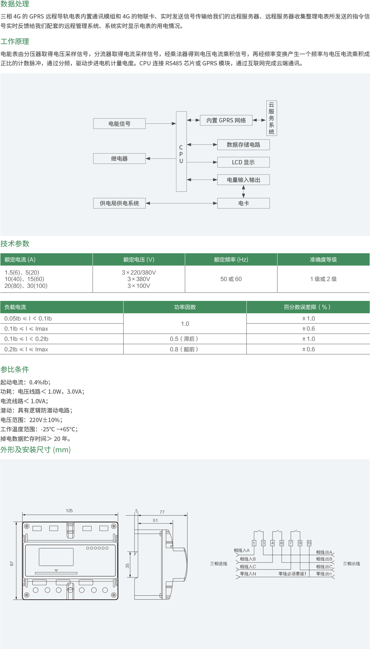 产品符合GB/T17215.321-2008《1级和2级静止式交流有功电能表》和GB/T 18460.3-2001 《IC卡预付费售电系统第3部分:预付费电能表》的全部技术要求。该仪表能实现计量预付费,掌上电脑编程及抄表等功能;并具有红外和485通讯功能,可实现远距离抄表,通信规约支持DL/T 645-2007《多功能电能表通信规约》,为用电自动化管理提供了必备的条件可通过红外或485方式抄表。